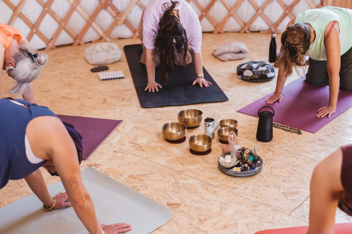 Les postures viennent délier le corps, réveiller les tissus, soutenir la colonne, pendant que le souffle vient créer de l’espace et remettre du mouvement là où tout semblait figé.